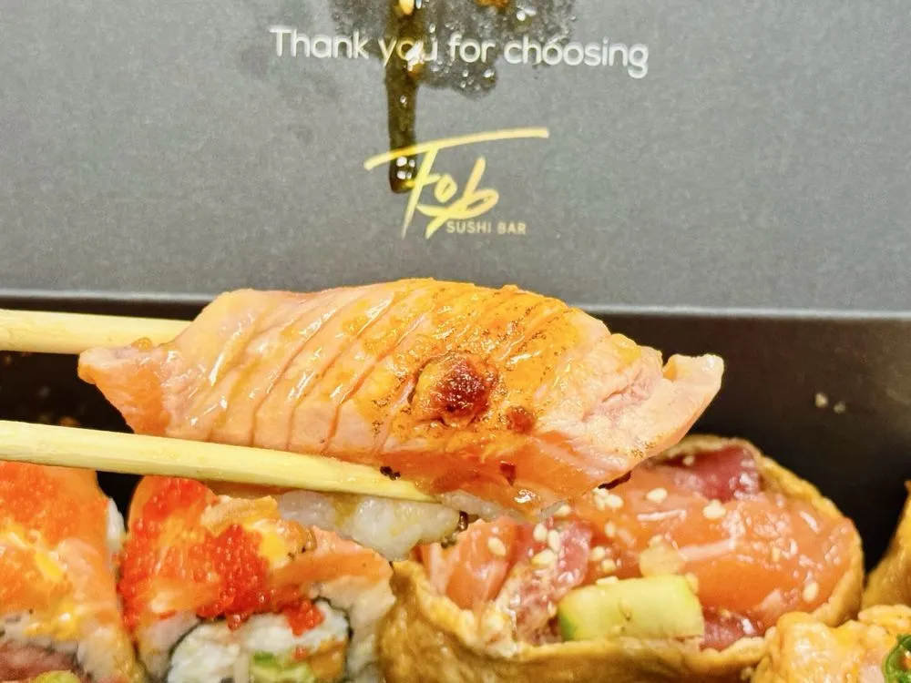 FOB Sushi Bar is known for its pay-by-the-pound sushi concept, but the seared salmon stands out as something special. It is simple, warm, flavorful, and comforting—perfect for both sushi lovers and people who are not big fans of raw fish.